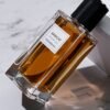 The bottle itself is a piece of art—clean, architectural lines with a solid glass base